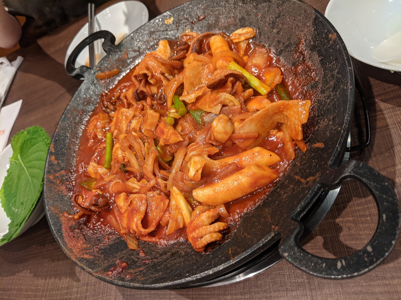 また、チュックミサムギョプサルは辛いけどタコと豚肉の旨味で美味、〆の焼飯にはとびっこが散らされていてぷちぷちでとても美味しかったです。- 旅行時期