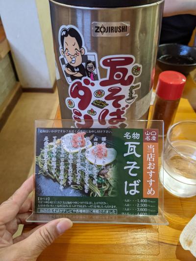 岩国といえば岩国寿司、そした山口といえば瓦そば。その両方が食べられる店を事前に確認してこちらのお店にお邪魔しましたが、この日は残念ながら岩国寿司は売り切れ・・瓦そばだけをいただきました。熱した瓦の上に茶そばと具が乗せられて登場、温かい汁につけていただきます。瓦で焼かれたおそばがかりっと香ばしく甘めの汁とよく合ってとても美味しかったです。次回は岩国寿司もぜひいただきたいと思います。