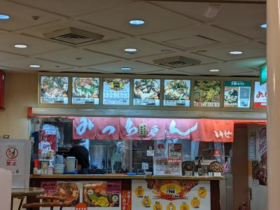 空港のフードコート内にあるお好み焼きのみっちゃん。みっちゃんにもいくつか系列があるようですがこちらは「いせや系」