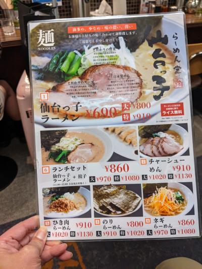 仙台市内に数店舗ある人気のラーメン店。深夜0時すぎに来店しましたが満席でした。豚骨しょうゆのこってりスープに中太のもちもち麺でとても美味しかったです。油の多め少なめ、味の濃い薄いのリクエストもOK、ライスの無料サービスもありました。