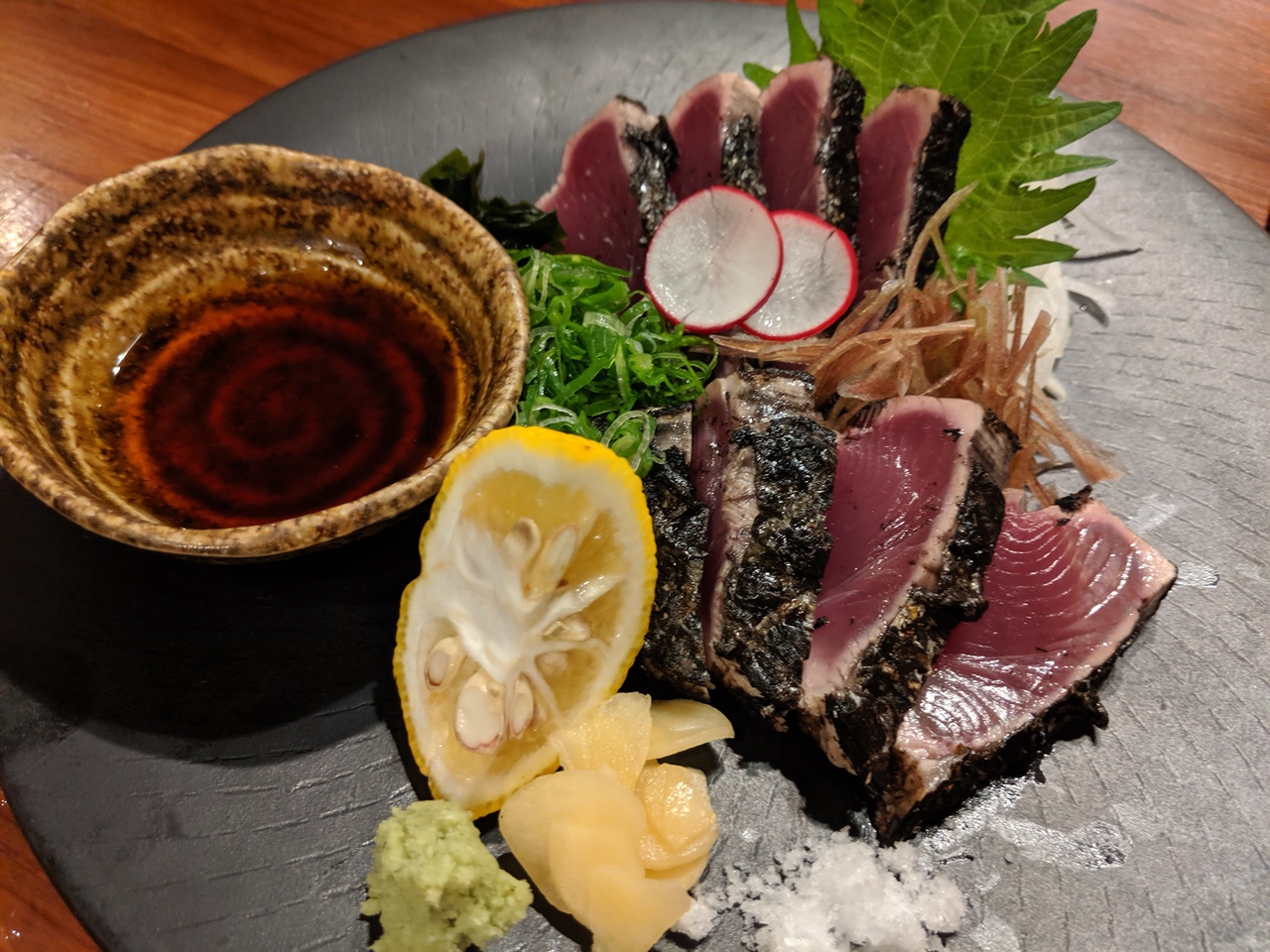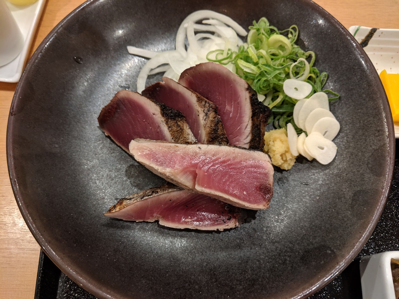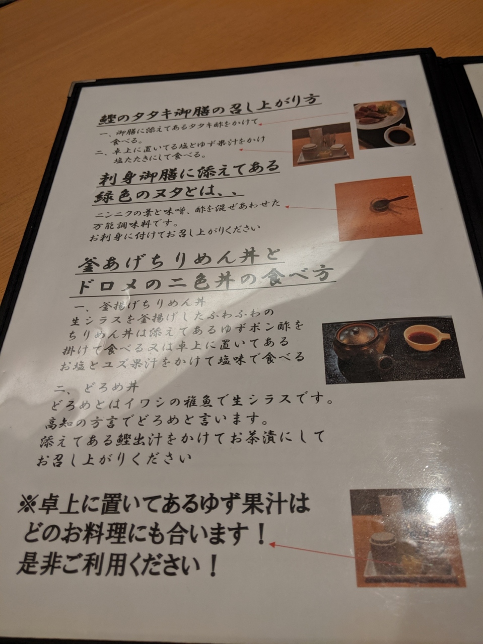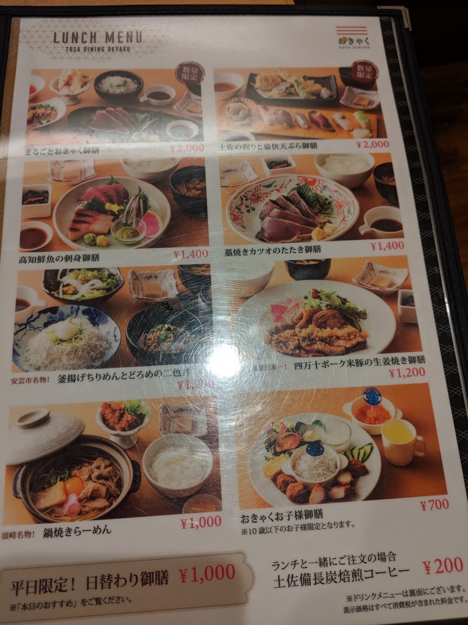 銀座の高知アンテナショップ、まるごと高知の2階にある土佐料理のお店。高知で食べたカツオのたたきがあまりにも美味しく、東京でもこちらなら?と期待して伺いました。期待通り、厚切りのカツオのたたきはとても美味しかったです。ランチの「まるごとおきゃく御膳」高知の味が一度に味わえてお得でした。