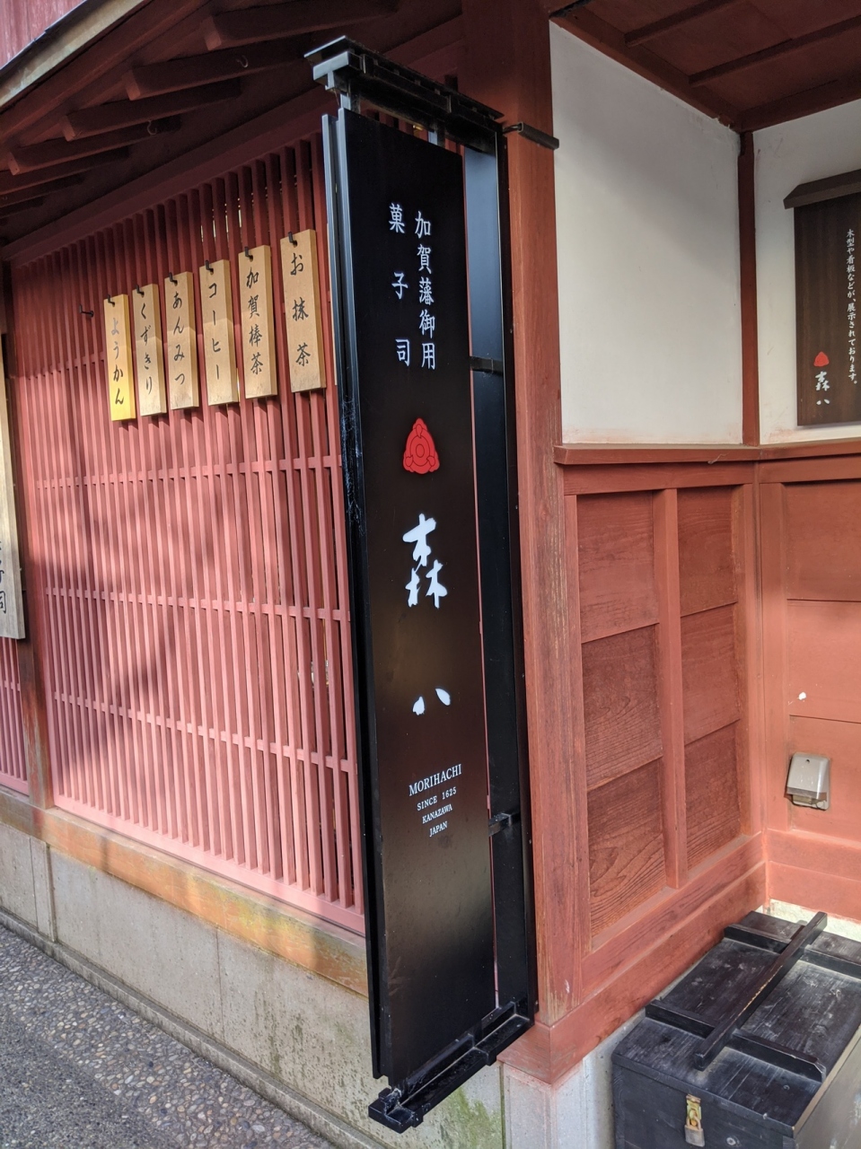 ひがし茶屋街にある森八直営の茶寮。森八といえば日本三大銘菓の長生殿が有名ですが、茶寮ではお抹茶と上生菓子のセットやコーヒーとお菓子のセットが楽しめます。窓際のカウンター席では茶屋街を行き交う人たちを眺めながら休憩できて良かったです。