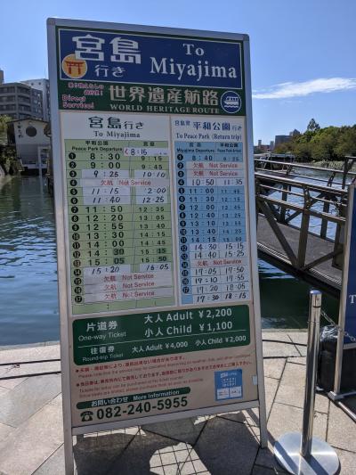 平和記念公園から宮島を航路で結ぶクルーズ線。45分ほどの船旅です。平和記念公園から乗船するとはじめは川をのんびり運航、途中から海に入るとかなりスピードアップするので迫力があります。航路から眺める広島の景色も素敵です。水位によって運休になることもあるようなので事前確認は必須です。