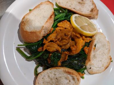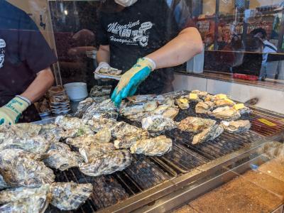 広島駅の駅ビル、エキエの中にある、広島つけ麺のばくたん屋がプロデュースしているお店です。広島名物のウニほーれんや牡蠣、お好み焼きにつけ麺といろいろなものが一度に楽しめてとっても良かったです。屋台風の雰囲気の店内も開放的で活気があって良かったです。