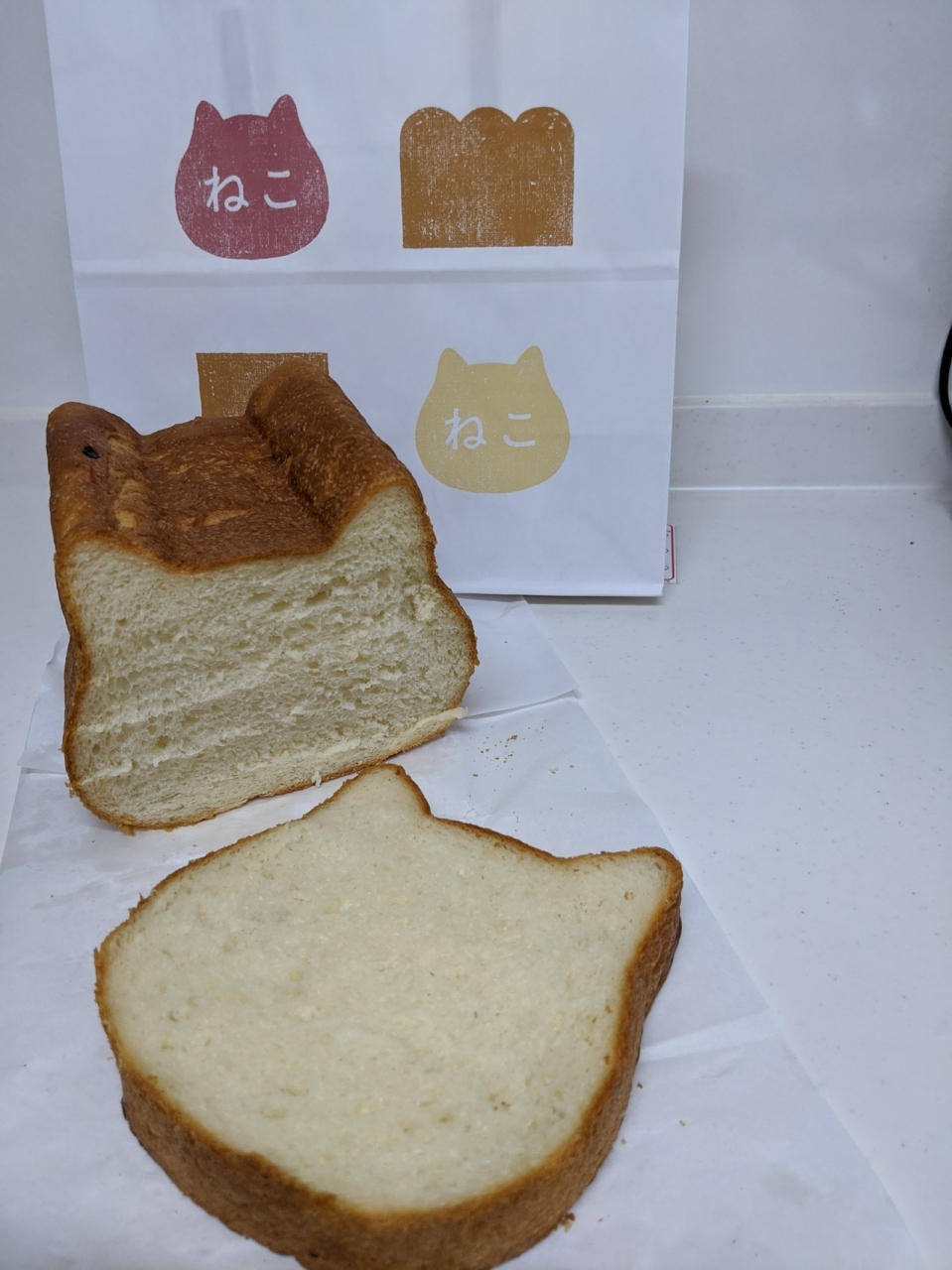 ねこの形のねこねこ食パンは水を使わずミルク100%、もちもちで甘みがありとっても美味しい食パンでした。- 旅行時期