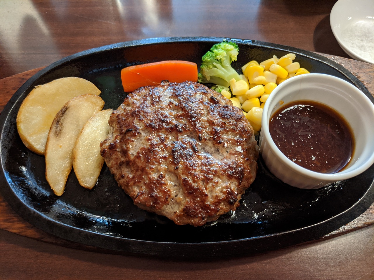 池袋のメトロポリタンホテル前にあるお店。宮崎県産の牛肉を使ったハンバーグとステーキのお店です。ハンバーグは極小140gから極大360gまで5段階から選べます。看板通り塩でいただくハンバーグはふわふわで軽い食感、お塩で食べることでお肉の味が生きて本当に美味しいハンバーグでした。