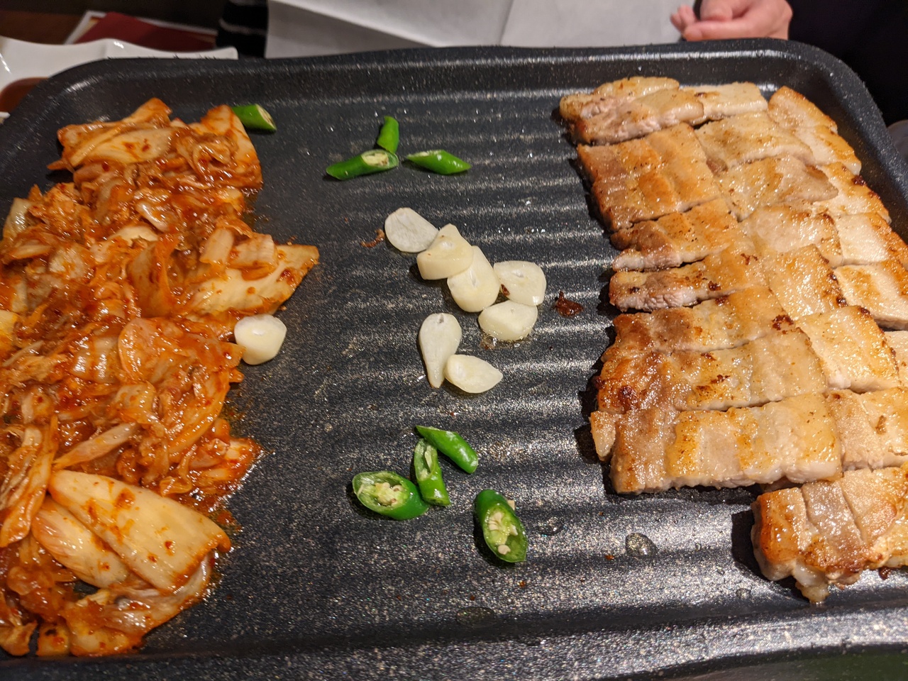 池袋サンシャインの近くの路地裏にある韓国料理のお店です。こじんまりとしたお店ですが座席はゆったり、サムギョプサルをいただきましたが、焼かれたものを鉄板で出してくれるのでにおいもつかず良かったです。お肉を巻く野菜も種類豊富で良かったです。