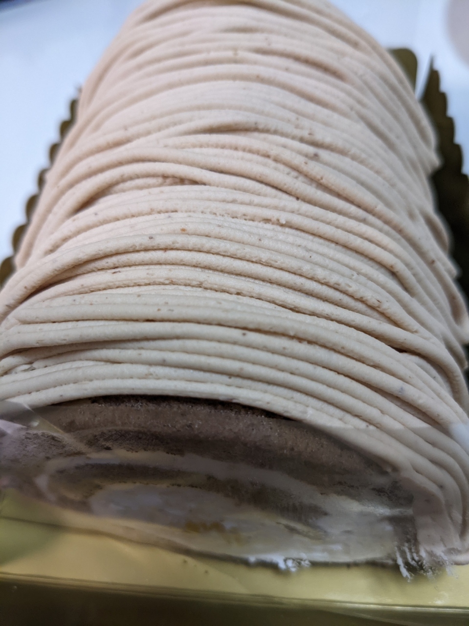 武蔵野線北朝霞駅と東武東上線朝霞台駅の中間地点にあるスイーツショップ。店の名前の通り月毎にお店が変わり、いろいろなスイーツ店の味が楽しめます。2022年5月は群馬の新菓人が出店、渋川モンブランロールは999円。食べごたえのある美味しいロールケーキでした。