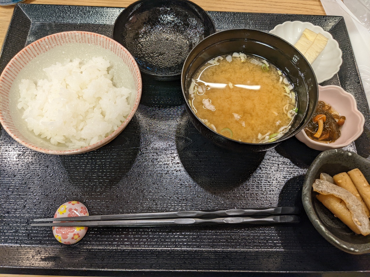 朝霞駅から徒歩で2分ほどのところにできた定食屋さん。カウンター席のみのお店です。お店の名前の通り「ごはん」がメイン。お釜で炊き上げた魚沼コシヒカリがお代わり自由にいただけます。おかずが出てくる前にまずは「ごはん」卵を別注すれば卵かけごはんも楽しめますが、カウンターに置かれたごはんにあう「塩」でいただくもよし。おかずなしでも何杯でもお代わりできそうな美味しいごはんでした。