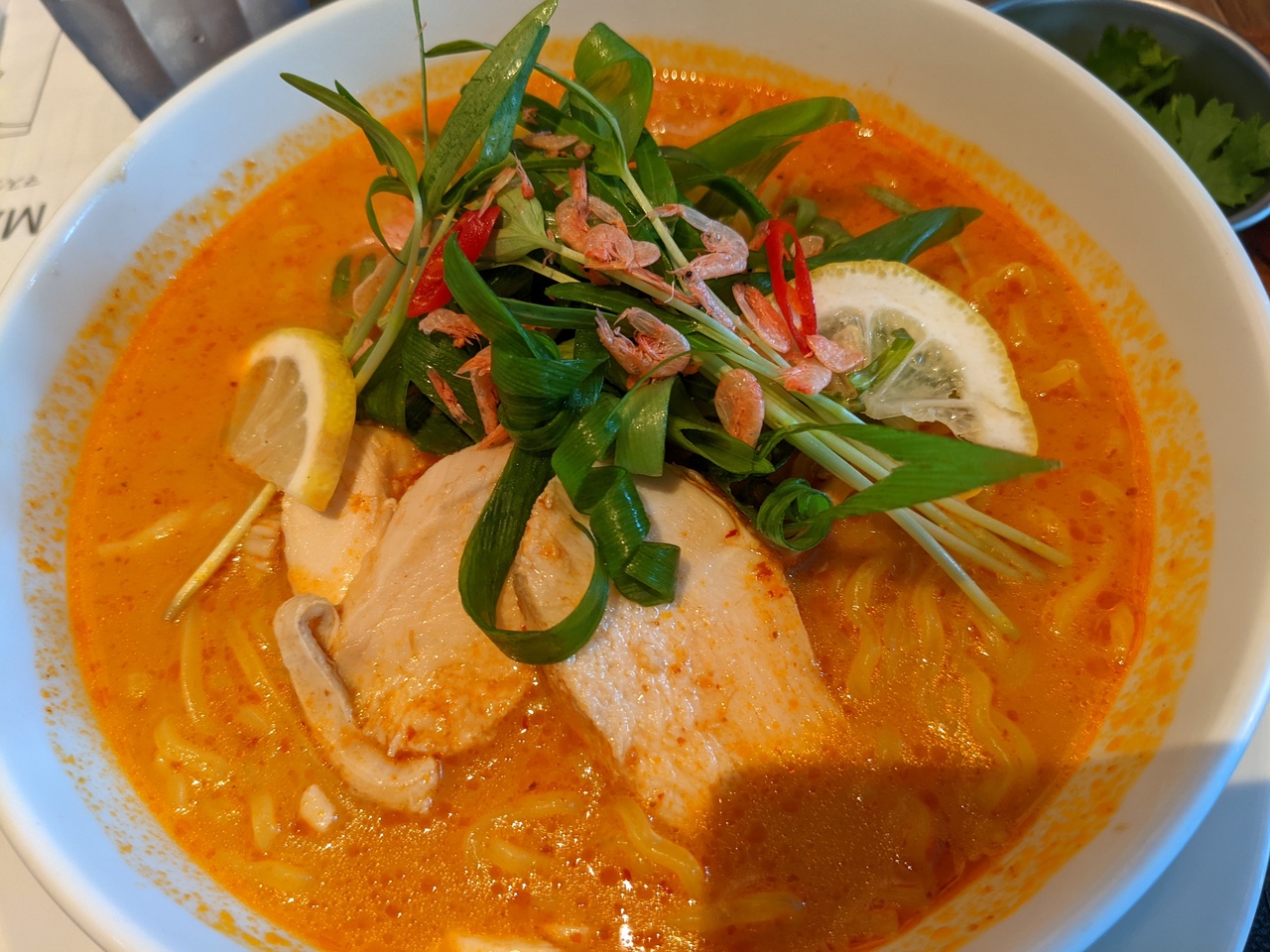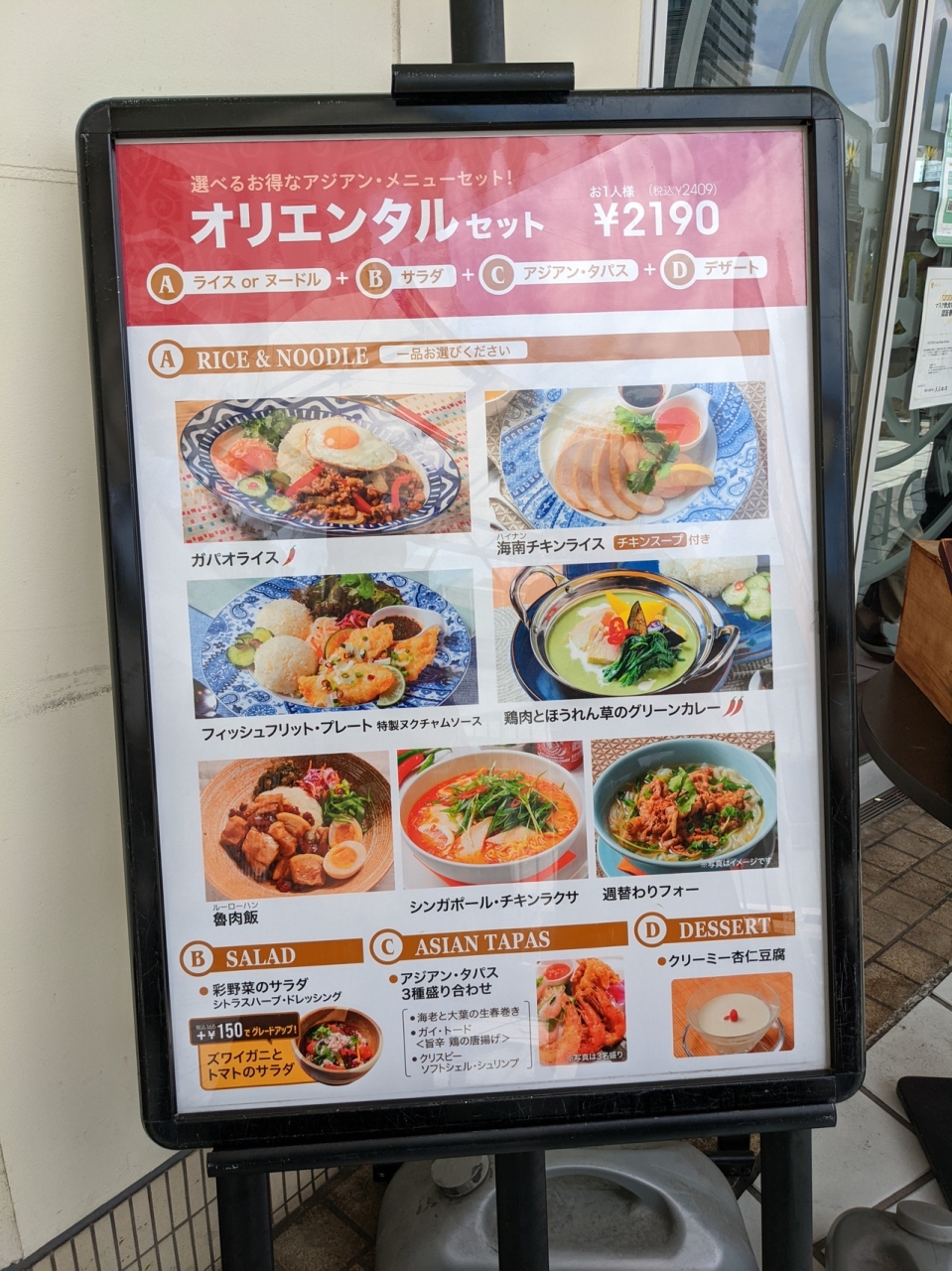 横浜ベイクォーターの5階にあるアジア料理のレストラン。ランチタイムに伺いましたが、タイ、ベトナム、シンガポール、台湾といったアジア各国の料理が楽しめます。明るい店内でテラス席もあり雰囲気の良いお店でした。シンガポールのチキンラクサをいただきましたが、エビ出汁の効いたピリ辛スープがココナッツの風味でマイルドになりとても美味しかったです。