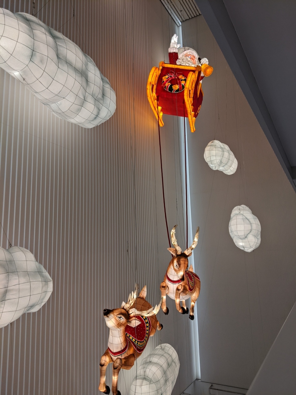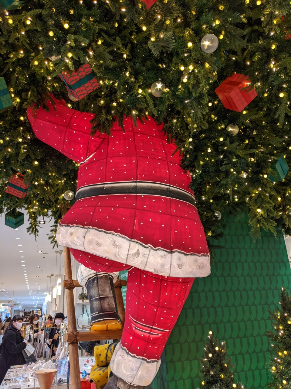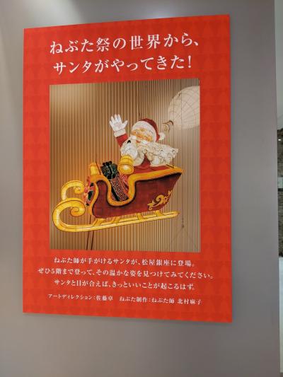 今年の銀座はイルミネーションが少なめかな?と思いながら松屋に入ってみると素敵なクリスマス装飾が見られました。青森のねぶたとのコラボで入口にはサンタクロース、吹き抜けにはソリに乗ったサンタクロースとトナカイ。エスカレーターを何度も上り下りして眺めてしまいました。