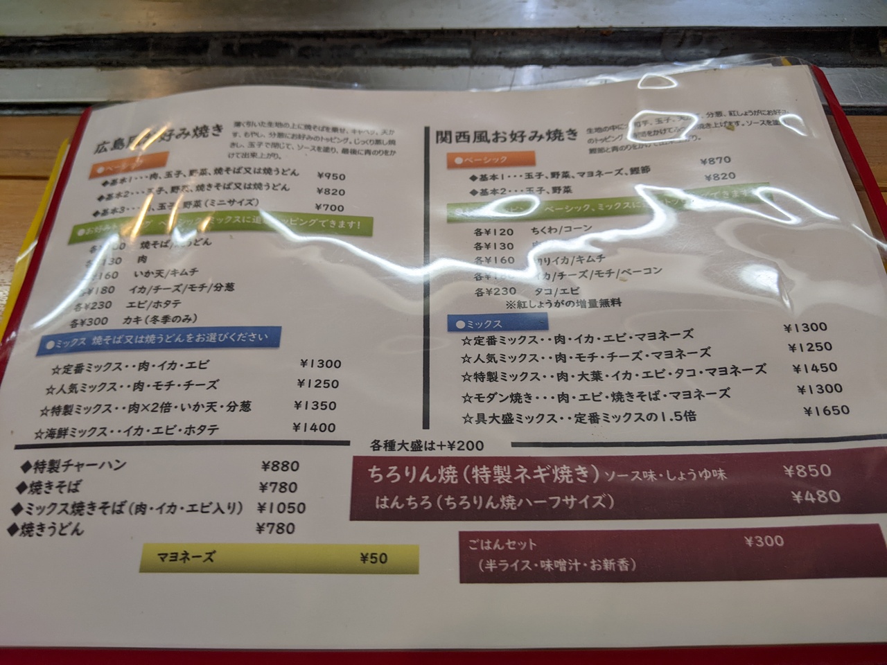 朝霞台駅から武蔵野線のガードしたを5分ほど進んだところにあるお好み焼き屋さん。いつも地元の人で賑わっています。お好み焼きは関西風と広島風、もんじゃ焼きも楽しめます。普段は広島風を好みますが、こちらのお店は関西風が美味しかったです。ふわふわの焼き上がりでペロっと完食。お好み焼き以外の鉄板焼きも美味しそうでした。