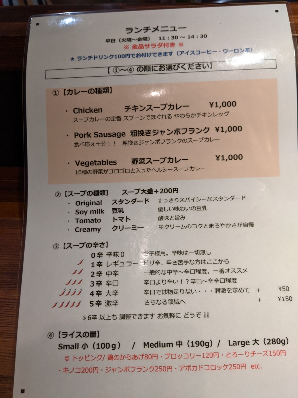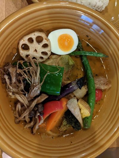 スープの種類はさらさら、とろとろ、えびの3種類、辛さもMILDからHOT20まで選ぶことができます。スープカレーとえば野菜!こちらのスープカレーも素揚げの野菜がたくさん入っていてとても美味しかったです。- 旅行時期