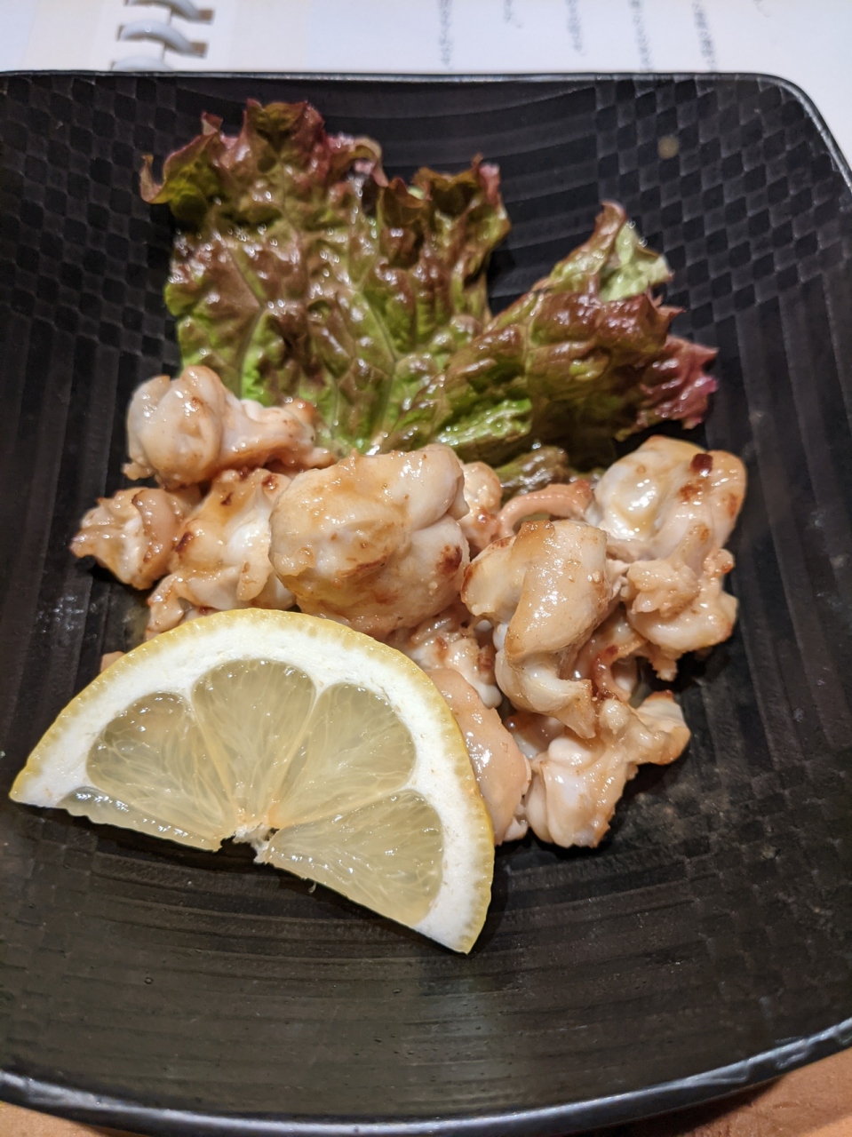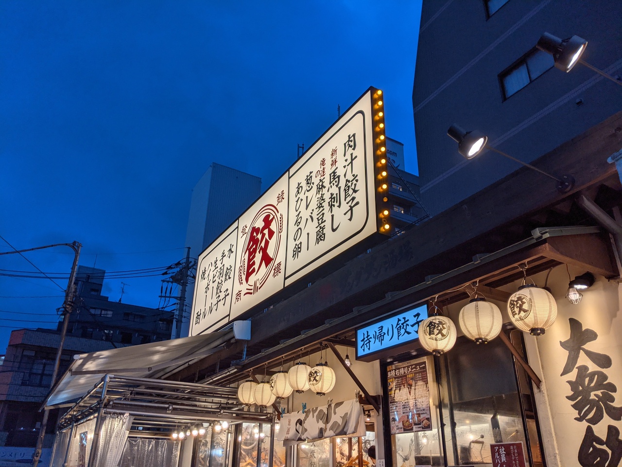 和光市駅から3分ほど、イトーヨーカドーの前にある餃子がメインの居酒屋さん。焼き上がりに時間がかかるからとのことで席につくとまず餃子の注文数を確認されます。店名にしているだけに肉汁たっぷりの餃子は何もつけずに食べてもとても美味しかったですが、食べるときにあつあつの肉汁をこぼさないよう注意が必要です。