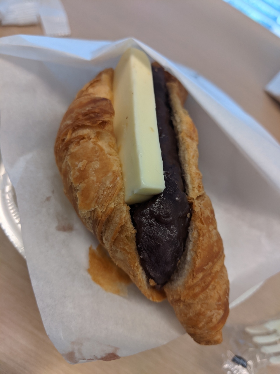 池袋サンシャイン60ビル近くの路地に誕生したあんこを挟んだクロワッサンのお店。老舗の和菓子店「末廣堂」のあんこをクロワッサンに挟んだ「あんクロワッサン」のほかに、季節のフルーツ・バター・チョコレートを組み合わせた商品も。テイクアウトですぐに食べない場合はバターやチョコレートは別添えにして提供されました。サクサクのクロワッサンに美味しいあんこでとても美味しかったです。小さい店舗ですがイートインもOKです。