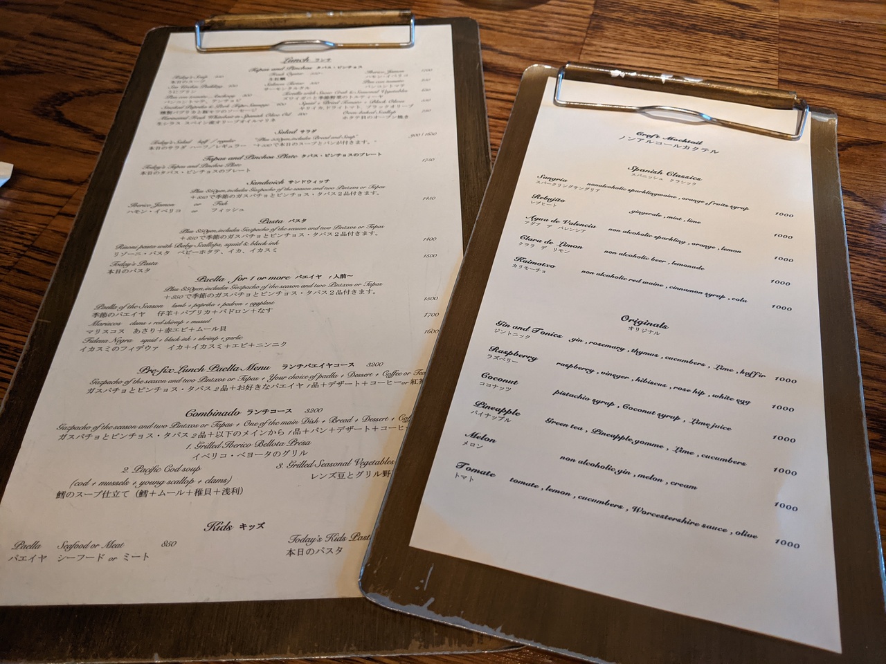 メニューはパスタやパエリアにプラス850円で季節のガスパチョとピンチョス·タパス2品がつくお得なセットもあり。