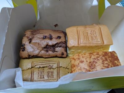 ふわぁしゅあ食感と話題の台湾カステラ。大きいサイズのものも魅力的ですが、1/4サイズでプレーン、チョコ、抹茶、チーズの4種類が味わえるものをいただきました。どれも美味しいのですがふわぁしゅあ食感をいちばん感じるのはプレーン!次回は大きなプレーンを購入したいと思います!