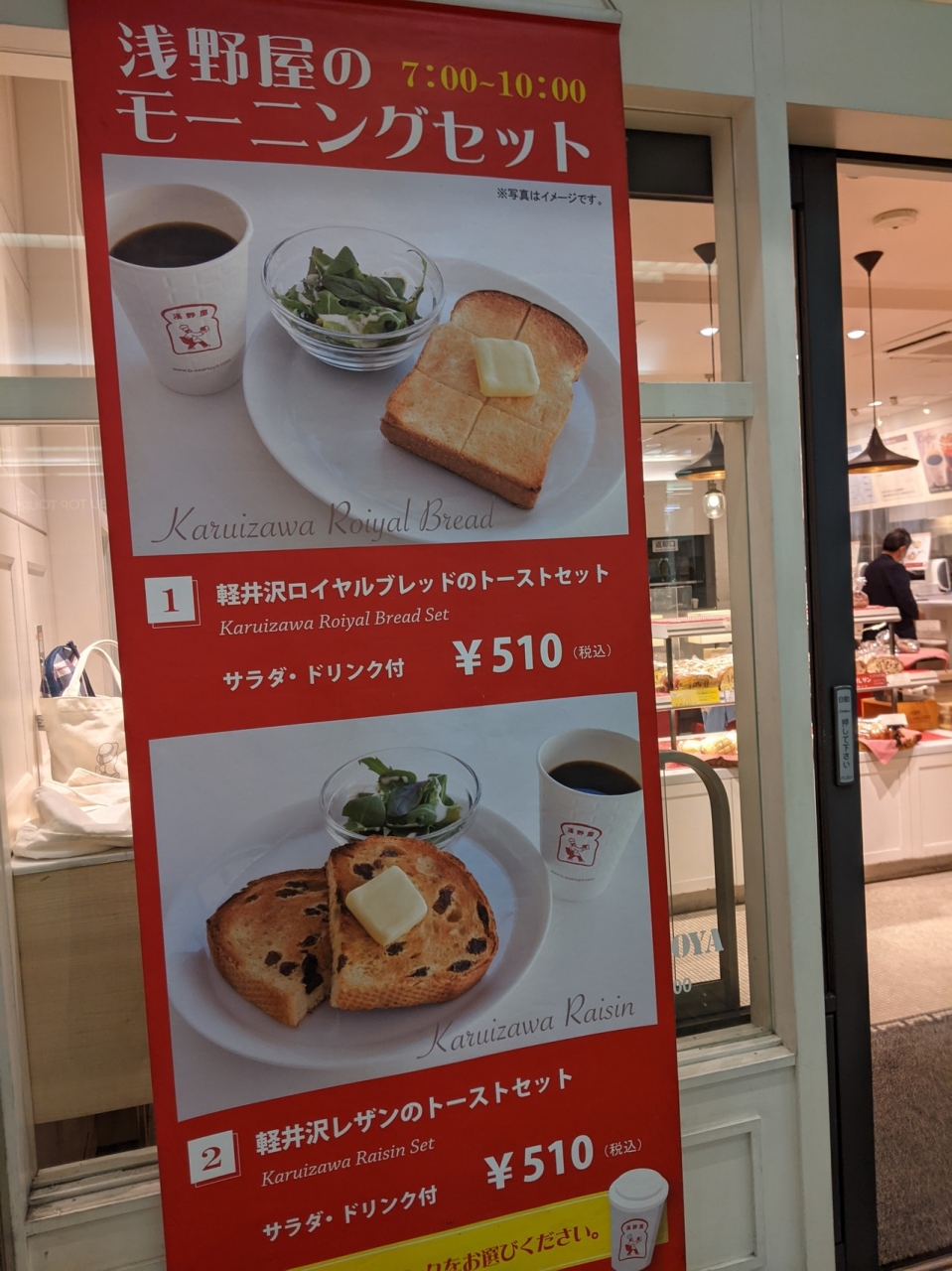 池袋駅にある軽井沢のパン屋さん、浅野屋さんの支店です。テイクアウトはもちろんですが、店内でいただくこともできます。
