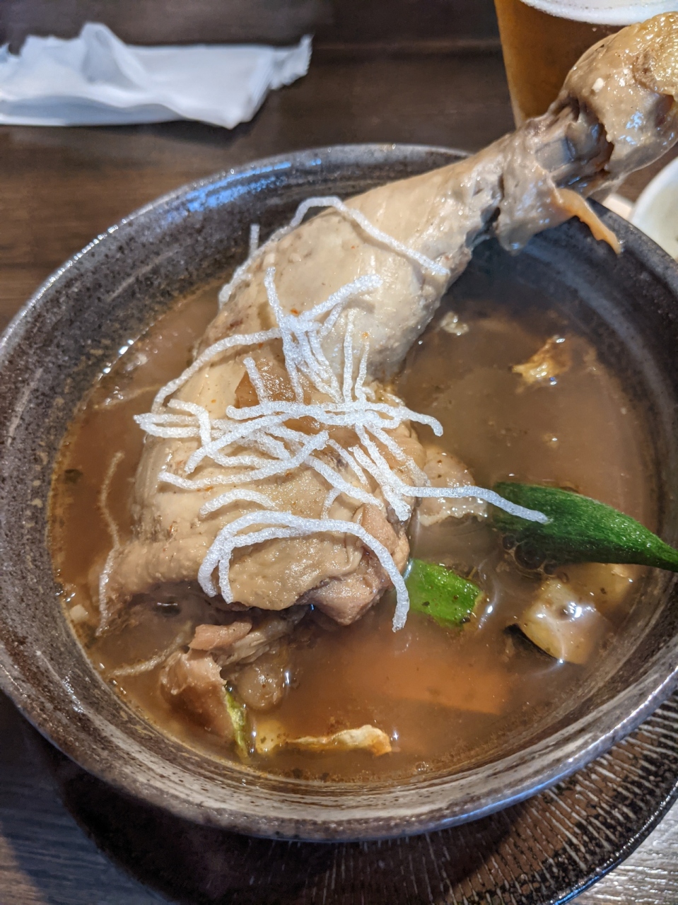 上福岡駅でお目当てのお店が開いていなかったので周辺をうろうろ…クラフトビールとランチメニューに惹かれて入店。カウンター席のみのこじんまりとしたお店でしたがスープカレーやカオマンガイ、麻婆豆腐とランチメニューも豊富、チキンスープカレーをいただきましたがホロホロの鶏肉に野菜たっぷりでとても美味しかったです。夜、お酒を飲むにもとても雰囲気が良さそうです。