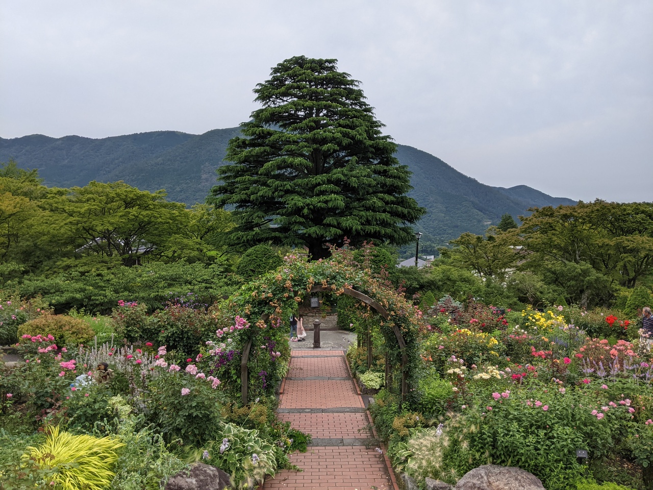 強羅駅からは徒歩5分ほど、駅からは上り坂が続きます。上り坂を避けるにはケーブルカーでひと駅の『公園上駅』から西門へ向かい入園する方法もあります。