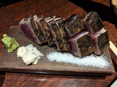 銀座の高知アンテナショップ、まるごと高知の2階にある土佐料理のお店。高知で食べたカツオのたたきがあまりにも美味しく、東京でもこちらなら?と期待して伺いました。期待通り、厚切りのカツオのたたきはとても美味しかったです。ランチの「まるごとおきゃく御膳」高知の味が一度に味わえてお得でした。