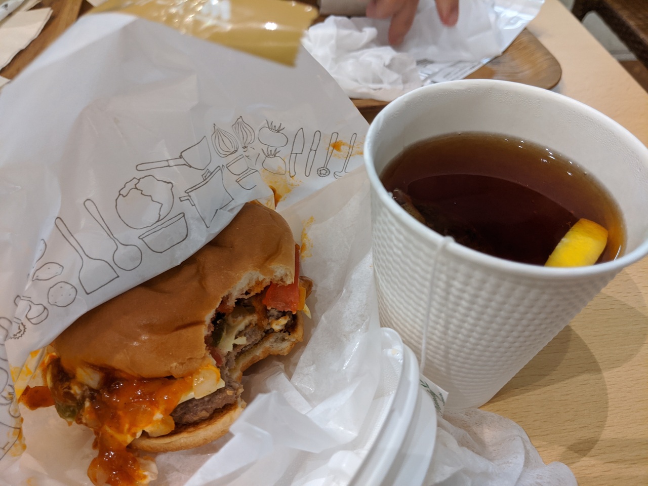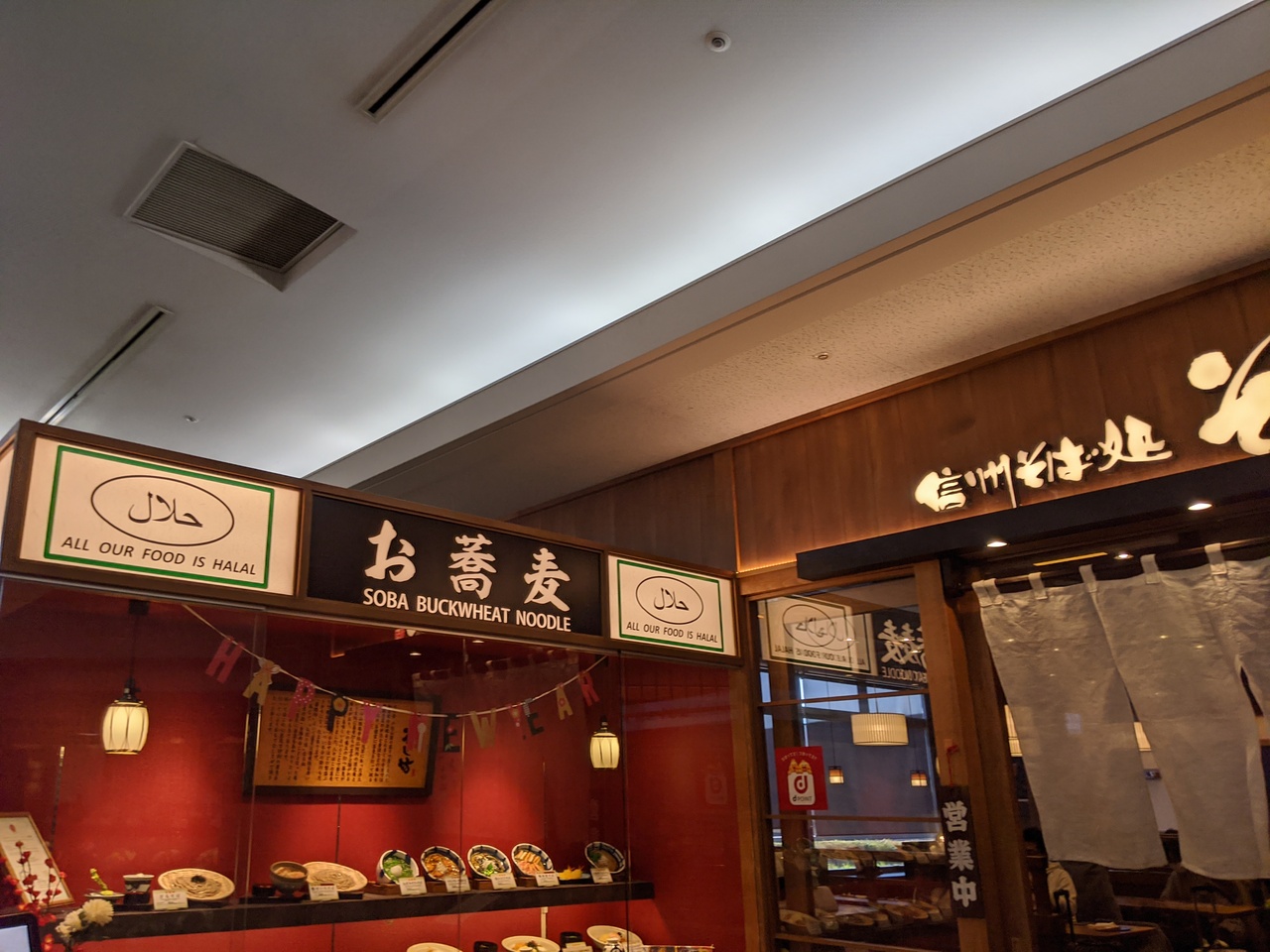 羽田空港国際線ターミナルの4階、飲食店街の端の方の24時間営業エリアにあります。深夜出発や早朝出発便利用のときに便利。店内利用とテイクアウトで税率が異なりますが、店をちょっとでた他店舗との共用イートスペースはテイクアウト扱いになりますので申告を間違えないように。