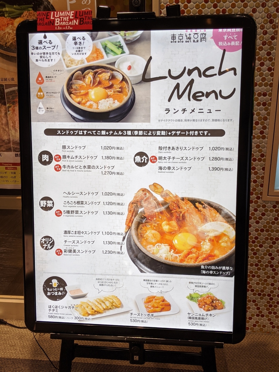 JR町田駅のすぐそば、町田ルミネの9階にあるスンドゥブの専門店。種類も豊富でスープの味や辛さ、ご飯の量も選べます。味噌味、辛さ2のホルモンスンドゥブをいただきましたがマイルドな味でとても美味しかったです。寒い季節には体もあたたまるのでオススメです。