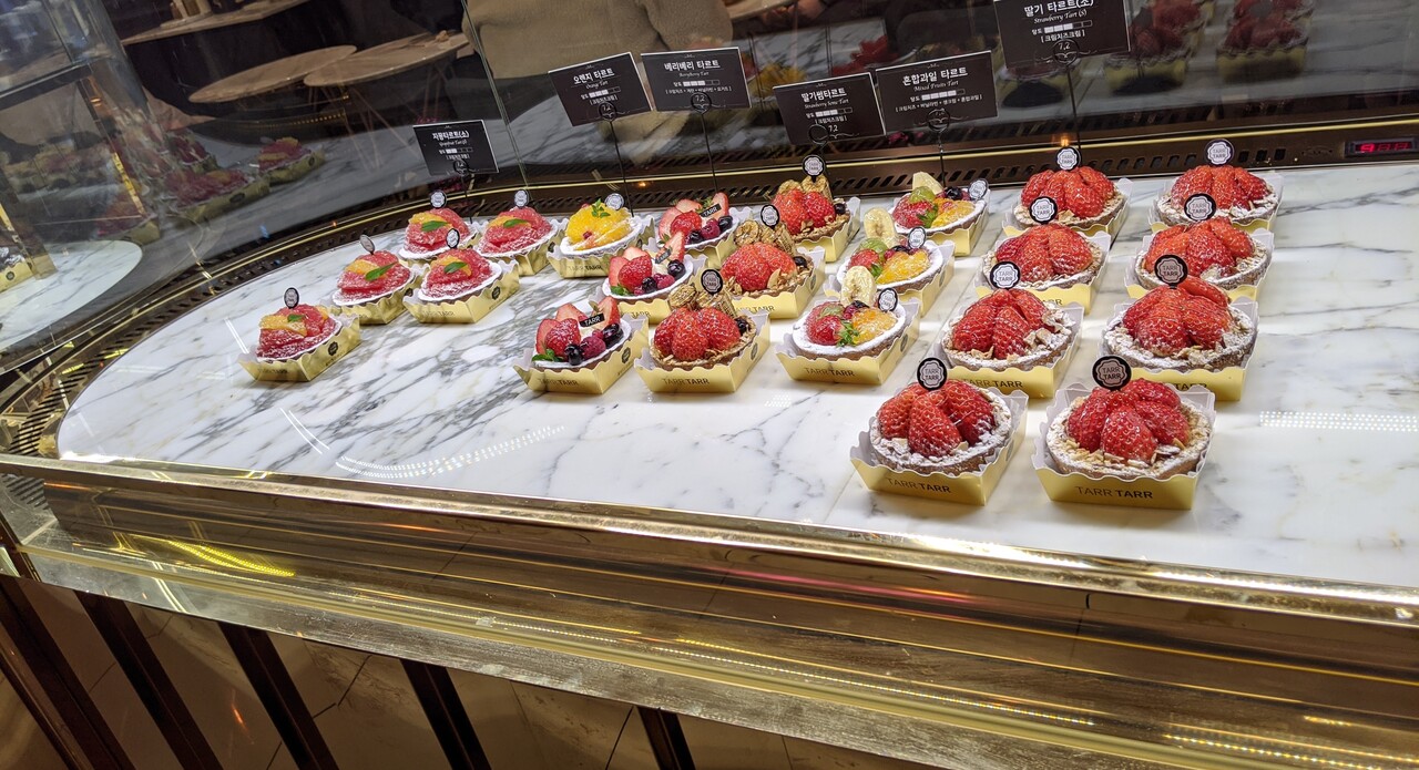 弘大や江南にあるタルトの専門店。フルーツを使ったタルトが魅力でお邪魔しましたがわたしが伺ったときは種類少なめでした。季節によるのかもしれませんね。でも素材を活かした甘すぎないタルトはとても美味、店内やカップも可愛らしかったです。また違う季節に訪問したいです。