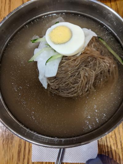 韓国を旅しているとときどきあっさりした冷麺が食べたくなるときがあります。そんな時に立ち寄るのがこちらの冷麺屋さん。シャリシャリに凍ったスープがとても美味しいです。炭火で焼いたお肉も香ばしく柔らかで美味!ふたりならビビンパも頼んでシェアするのがオススメです。