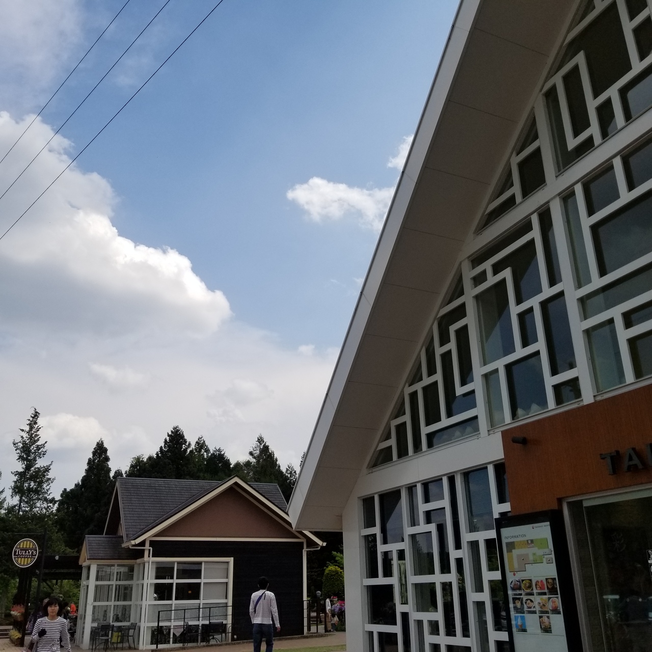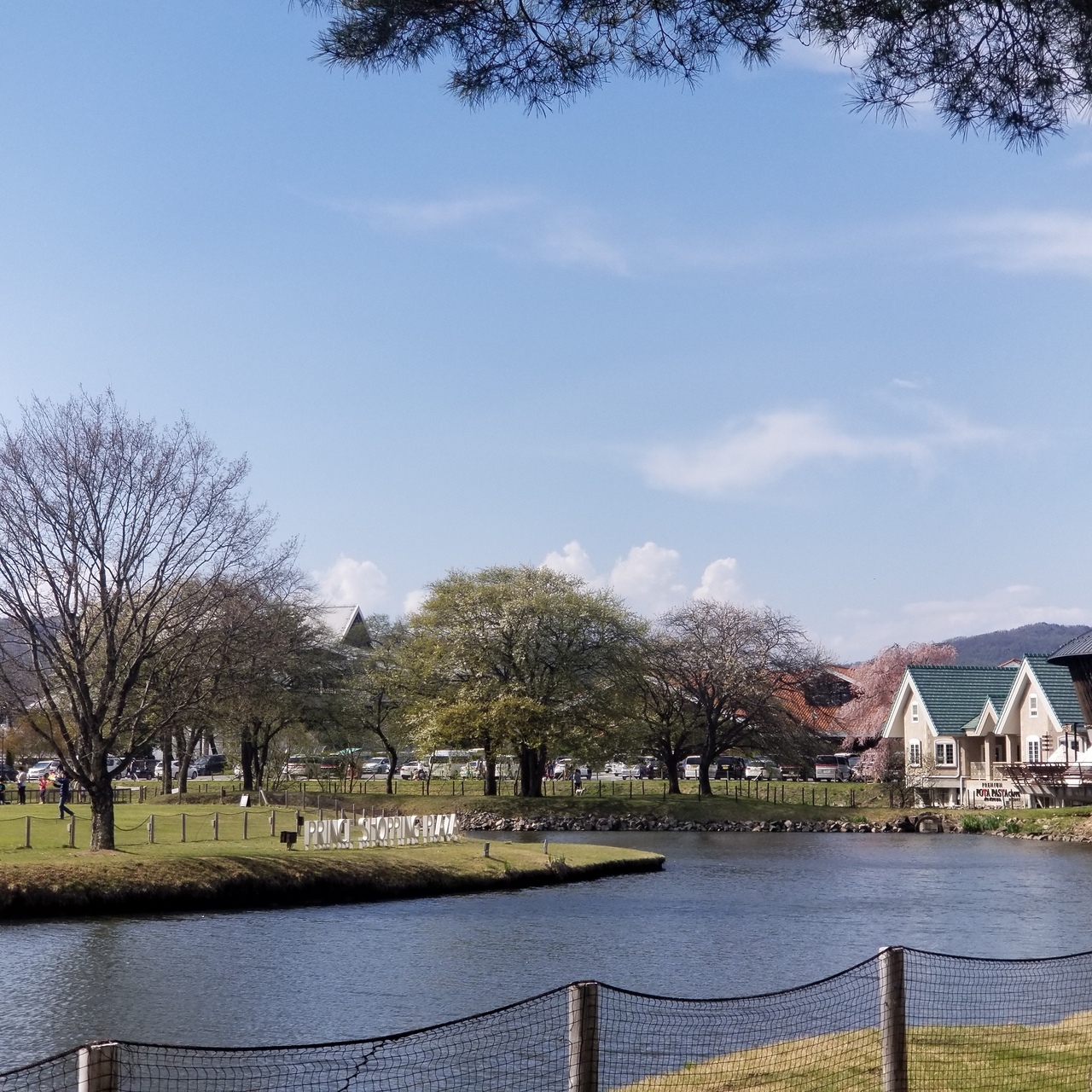 軽井沢駅を中心に左右にイーストモール、ウエストモールが広がり真ん中には芝生広場もあるのでペット連れでも賑わっています。