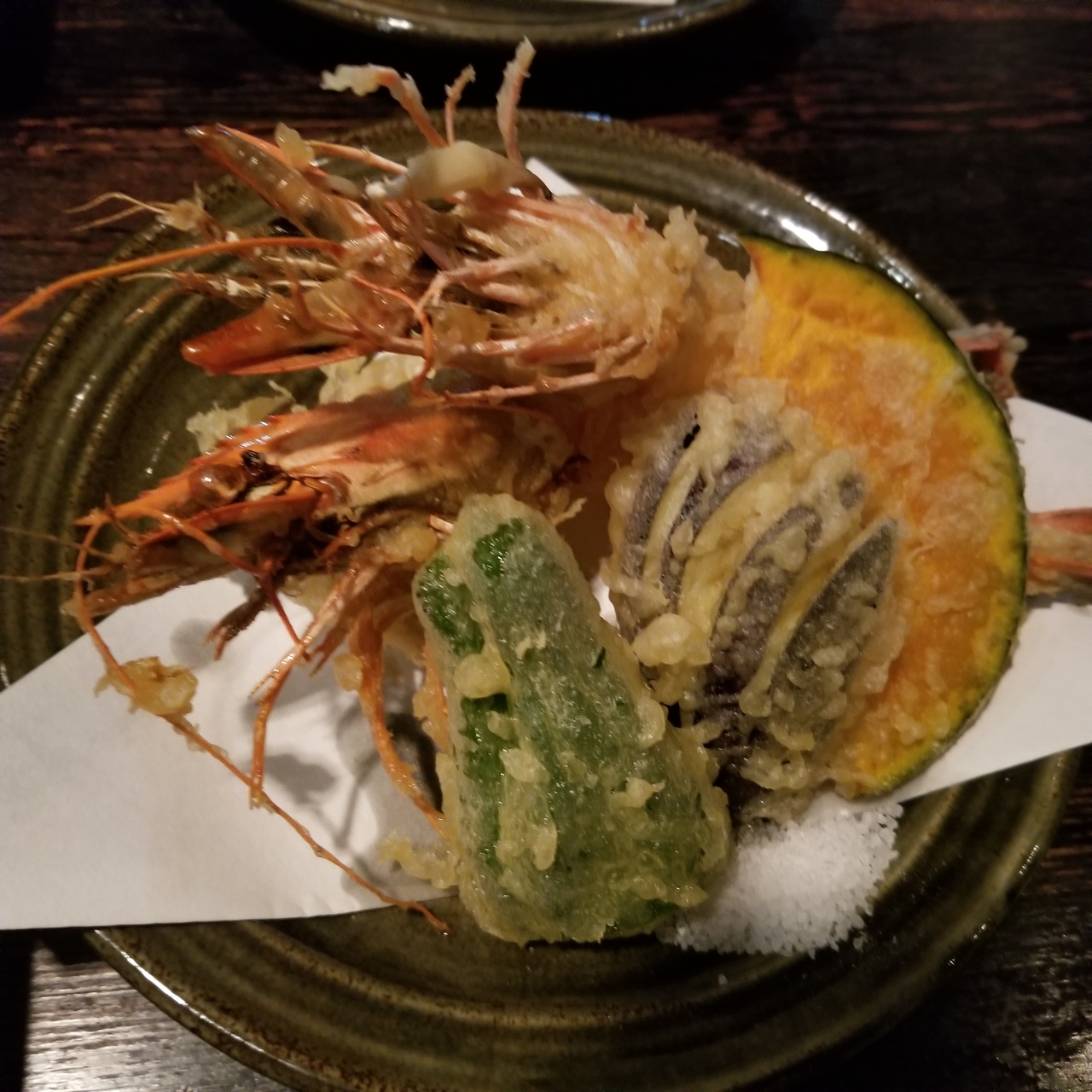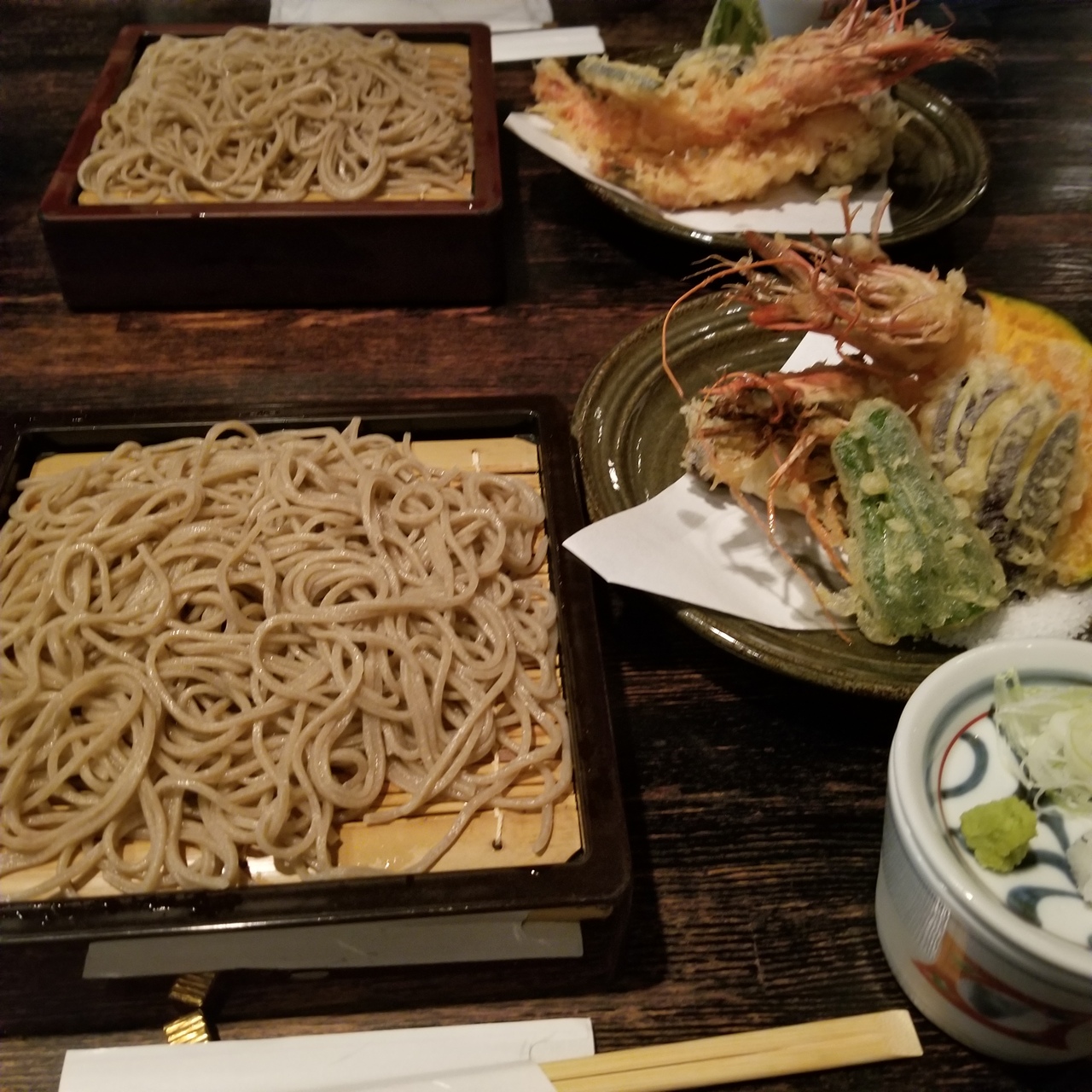 上天せいろそばの天ぷらは尾頭付きのエビが2尾、からっと揚げられた天ぷらには粗塩も添えられているのが嬉しかったです。- 旅行時期