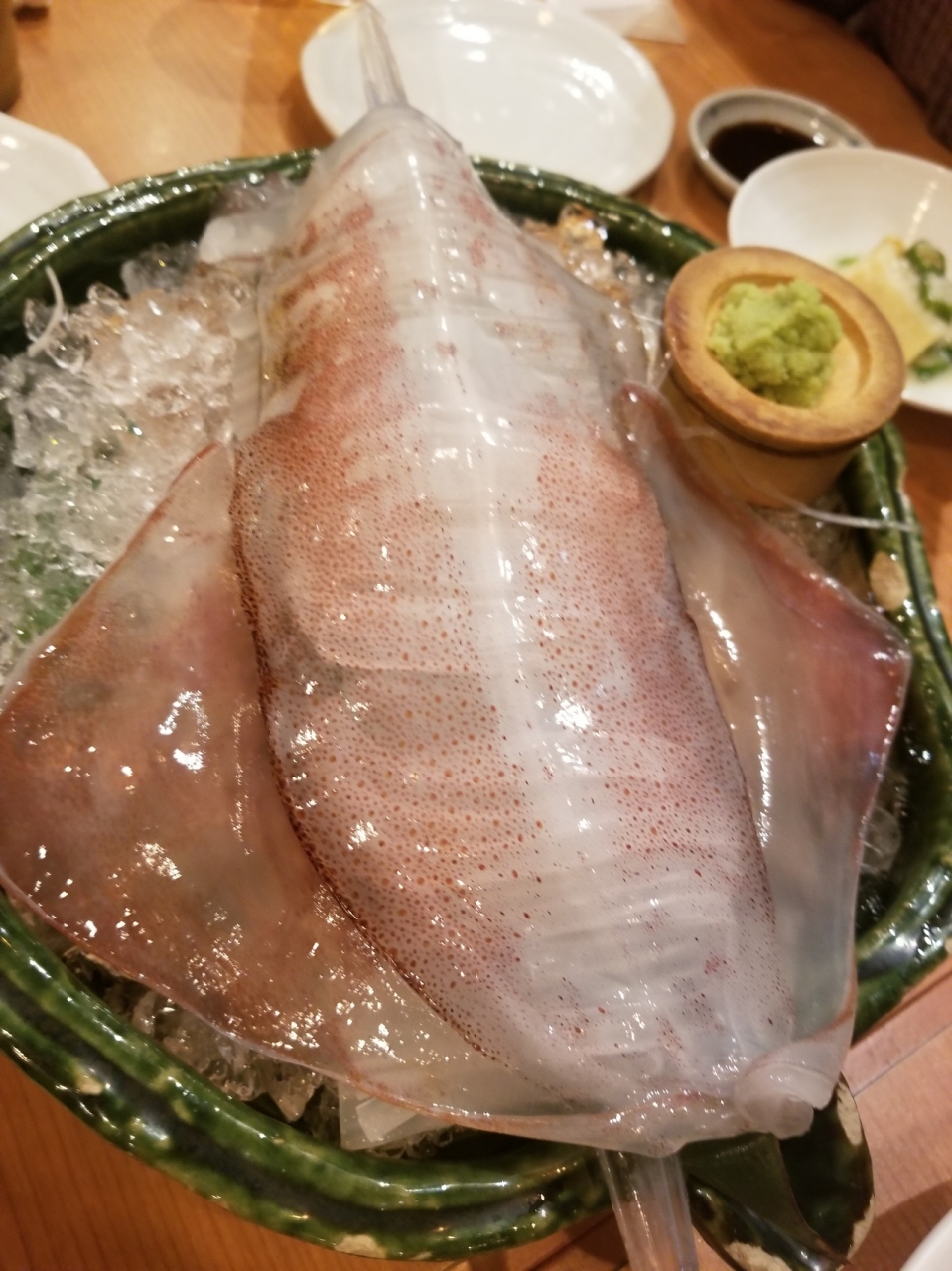 朝霞駅南口を出てすぐのところにあるこじんまりとしたお店。お店に入るとクーラーボックスの中を泳ぐイカが…メニューに『活きイカ』があったので注文してみることに。お値段は時価(?)この日は2500円でした。