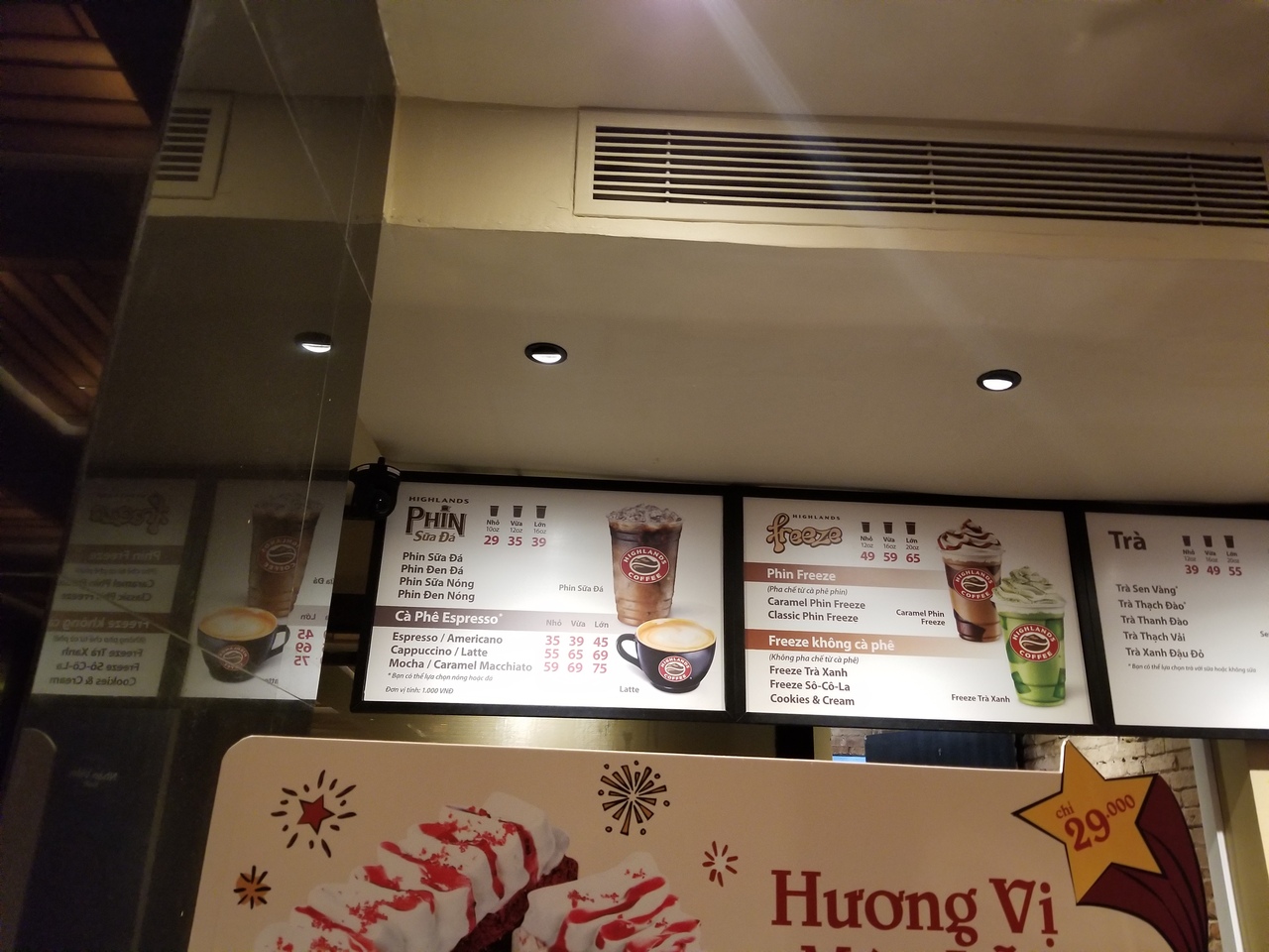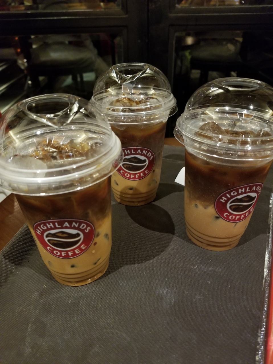 ベトナムのコーヒーチェーン、ハイランズコーヒーのオペラハウス店。物価の安いベトナムではちょっと高めのカフェではないかと思いますが、雰囲気がとても良く落ち着いてコーヒーを飲むことができます。