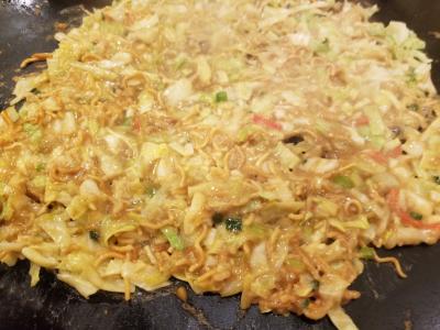 渋谷のハチ公前交差点からすぐのところにある、もんじゃ焼きとお好み焼きのお店は昭和32年創業だそうです。間口は狭いですが3階まで客席があります。