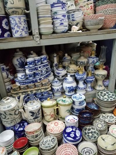 旧市街にある市場、1階入口にはドライフルーツやナッツを売る店舗、中には日用雑貨やお土産物やさんが並んでいます。2階には衣料品や生地屋さんが並んでいました。同じ商品でも店舗によって値段が違うので、確認と価格交渉は必須です!