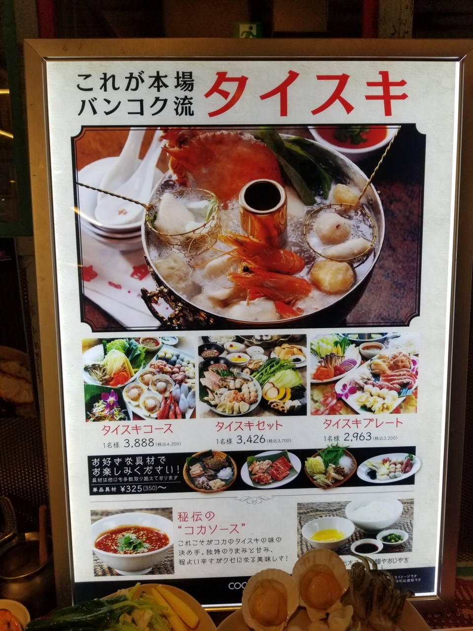 有楽町ビッグカメラ6階にあるお店。マンゴーツリーカフェに併設されているコカレストランではタイスキがいただけます。タイスキを食べるか、アラカルトでタイ料理を食べるかで通される席が違うので事前に決めておく必要があります。タイスキはセットもありますがお好みで野菜や肉をチョイスすることも可能。ほどよい辛さのタレにスープの旨味がマッチしてとても美味しいです。
