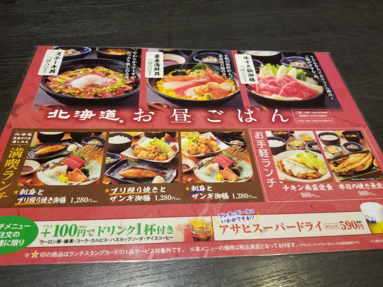 浜松町駅直結の世界貿易センタービル地下にあります。北海道の味を味わえる居酒屋として有名ですが、ランチタイムも営業していました。ランチの丼や定食、どれも北海道を意識したメニューでボリューム満点、お手頃に北海道の味を楽しめます。