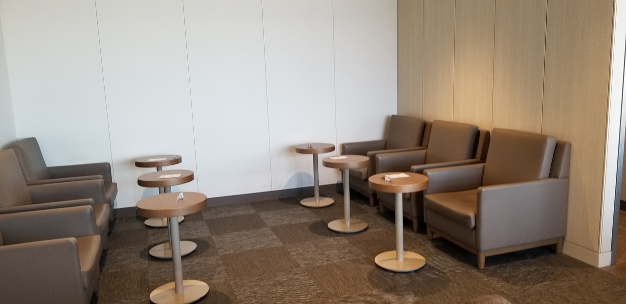 羽田空港国際線ターミナルのカード会社ラウンジは2ヶ所ありますが、こちらは出国ゲートを出た目の前のエスカレーターをあがったところにあるのでどの航空会社利用でも便利です。窓も大きく明るく綺麗ですが、もうひとつのアネックスと比べてしまうとちょっと狭い気がします。