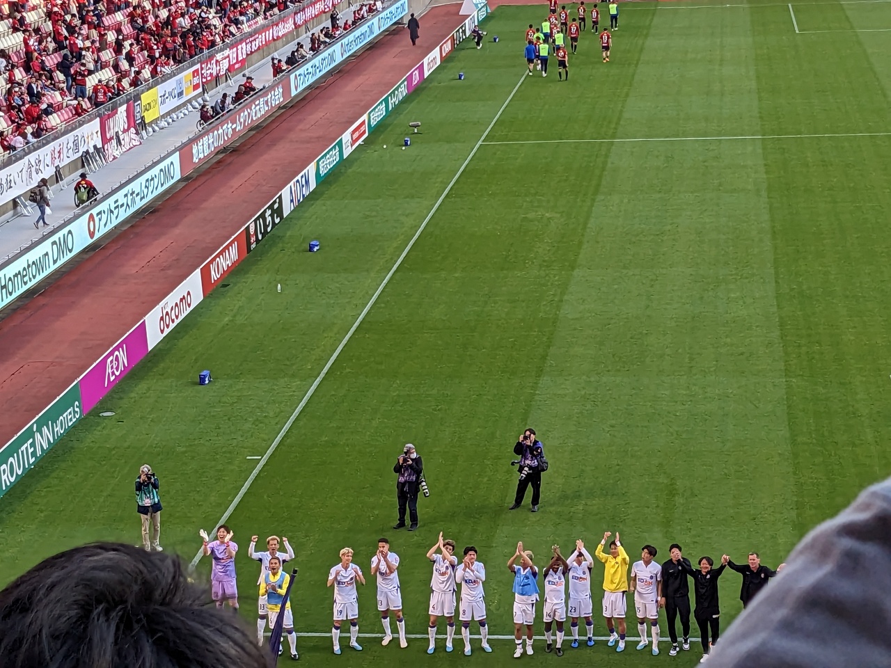 サッカー専用スタジアムと言うだけにピッチが近くてとても見やすく感じました。