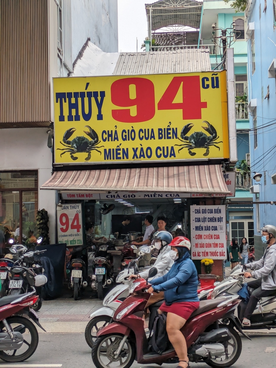 タンディン教会方面でお昼ご飯を食べる店を探して地図を見ていてみつけたカニ料理のお店。実際は歩いて15分程かかりましたが・・そして「クアン94」と「94トゥイー」と類似店あり..どちらが本物?説等いろいろあるようですが、最初に目指した94トゥイーに入ります。ソフトシェルクラブとカニとエビのチャーハンをいただきました。チャーハンがとても美味しかったです。