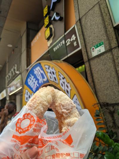 ドーナツ好きな友人が台北で絶対食べるべき、びっくりするほど美味しいドーナツとイチオシするドーナツ。前回来たときは開店前で食べられず..コロナ渦を経てようやく食べることができました。人気のお店だけに平日の昼でも数人の列ができていましたが、それほど待たずに購入できました。イートインはないので店先で立ったまま揚げたてをいただきましたが、周りはサクサク中はふわふわ、砂糖とミルクパウダーがかかっているのに甘過ぎず、正に絶品!すぐまた食べたくなる美味しさでした。