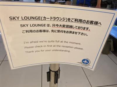 羽田空港国際線ターミナルのカードラウンジ。混雑のため並んで席が空いた順番で案内されました。