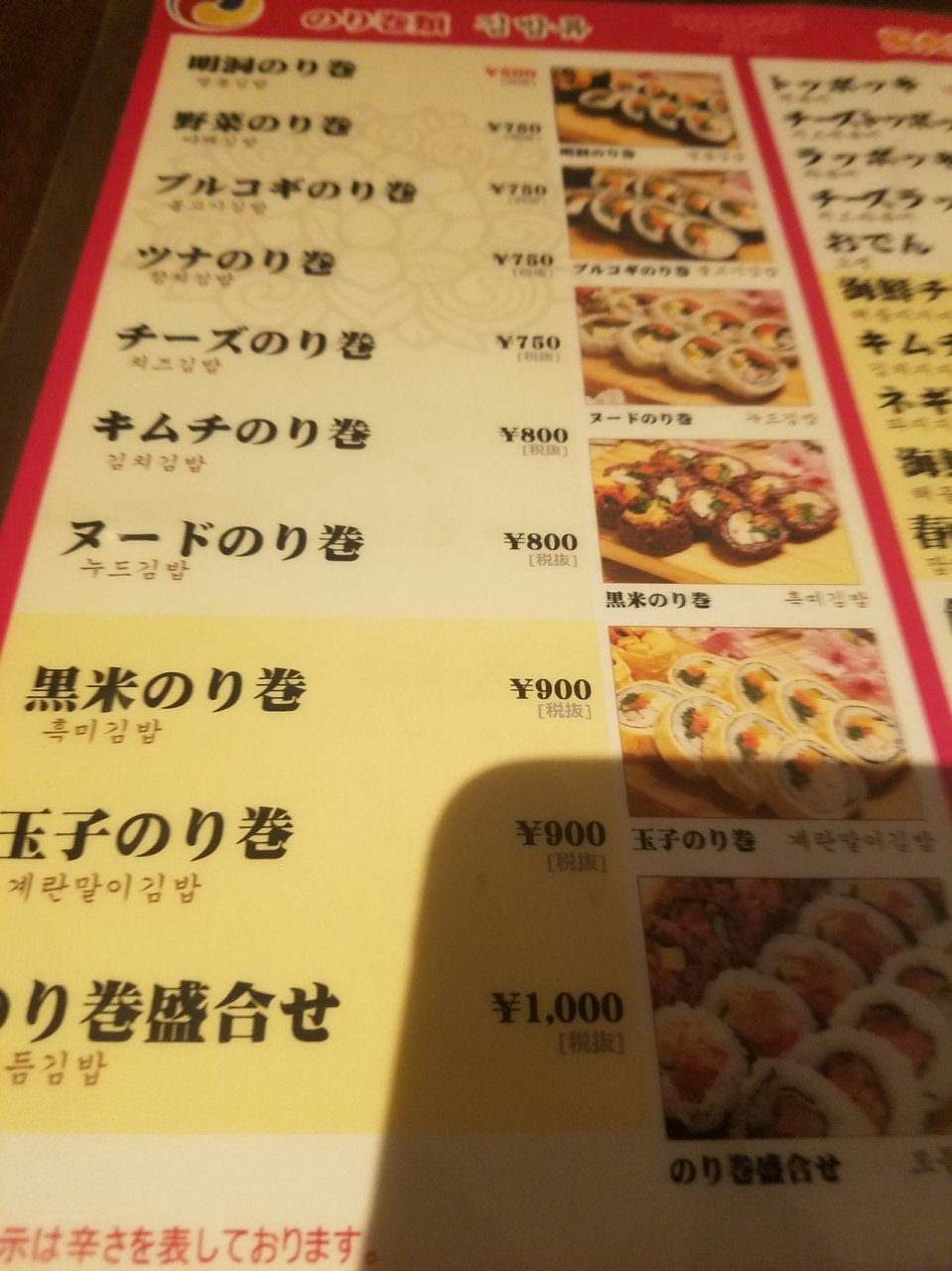 新大久保にある韓国のり巻きのお店ですが、のり巻き以外のお料理も美味しいです。