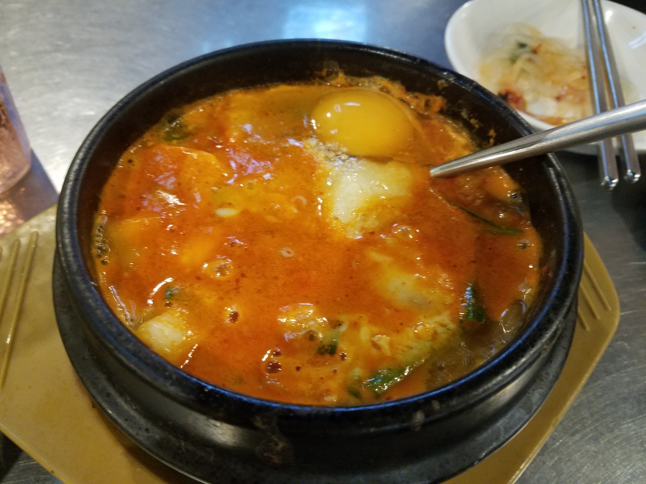 梨泰院のハミルトンホテルの裏の通りにあるプデチゲ屋さん。革製品のお店で買い物をして、お店のおじさんに近くで美味しいお店は?と聞いたらこのお店を教えてくれました。地元の人気店なのか平日のお昼時に伺ったところ満席でした。辛すぎずコクのあるスープはクセになるお味です。