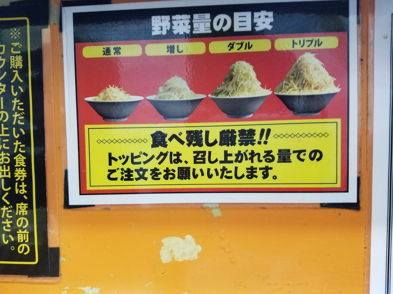 こってりラーメンにアブラ、野菜等のトッピングは無料で増量できます。ボリューム満点、圧倒的に男性客が多いのもうなずけます。