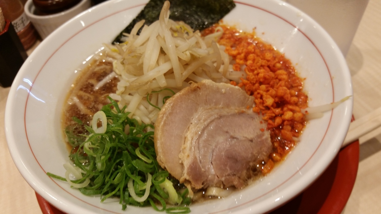 スープは濃厚な醤油ベース、平たい麺とマッチしてとても美味しかった。ただ辛揚げによって後半味がだいぶ変わります。私は辛揚げが溶けだす前の醤油味がとても気に入ったので次は辛揚げなしでいただこうと思いました。- 旅行時期