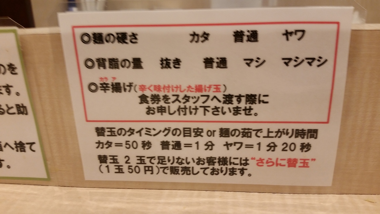名物の辛揚げ(揚げ玉の辛いもの)無料トッピングはカウンターで食券を渡すときに口頭で伝えればok