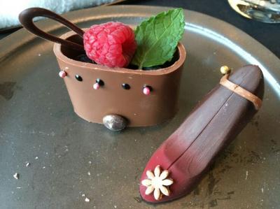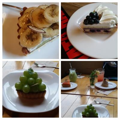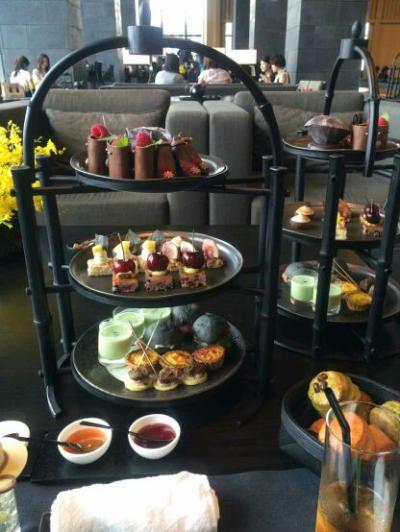 ブラックアフタヌーンティと言われるティータイムのコースを予約、その名の通りブラックを基調とした器にお菓子たち。