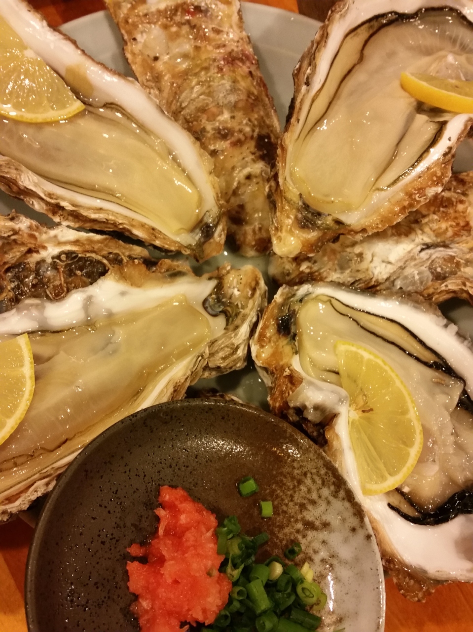 きれいに並べられたニラの下にたくさんのもつ?と思っていたのにもつも少な目(T-T)味も特筆するほどのことはなく、店内も狭く落ち着かず。本日のお勧めと言われた生牡蠣も大きいだけで生臭くイマイチでした(そして高い)