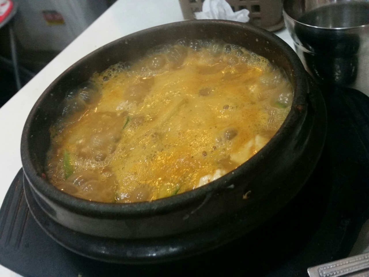 スンドゥブは辛めでしたが美味しかったです。チョングッチャンは以前深夜のサウナで食べたものよりクセがありました・・サウナの味が気に入っていたのですが、こっちが本物のチョングッチャンなのかな?また別の店でも試したいと思います。